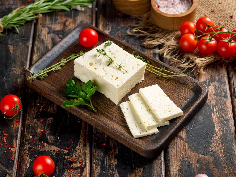 Рассольный сыр из овечьего молока с плотной текстурой и солоноватым вкусом. Подаётся нарезкой.